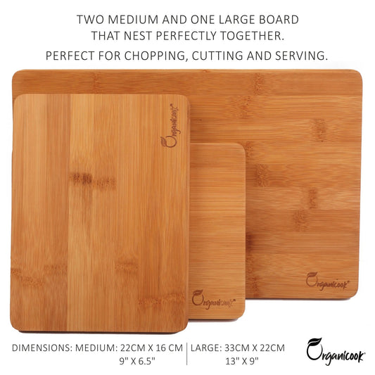 Organicook Wood Chopping Board Set - 3 x Wooden Chopping Boards, Serving Platter/Serving Boards - Bamboo - Light Weight Chopping Boards for Kitchens, Beautifully Handmade Cutting Boards - Easy Clean