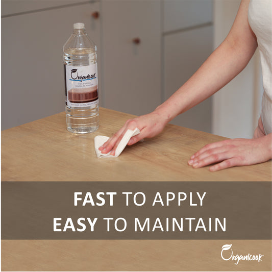 Organicook Wooden Worktop Oil Clear, 1 Litre. Fast and Easy to Apply - Food Safe Alternative to Danish Oil - Interior Wood Oil - Natural - Food Grade Wood Protection in Your Kitchen and Home
